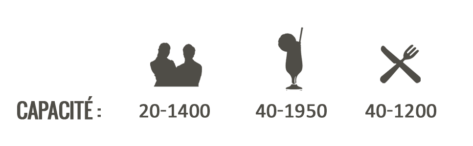 Dîners - réceptions : D’une capacité de 1200 couverts, composé de deux espaces traiteur et d’une superficie totale de 250 m2. Accueillez jusqu’à 1950 personnes pour vos cocktails.