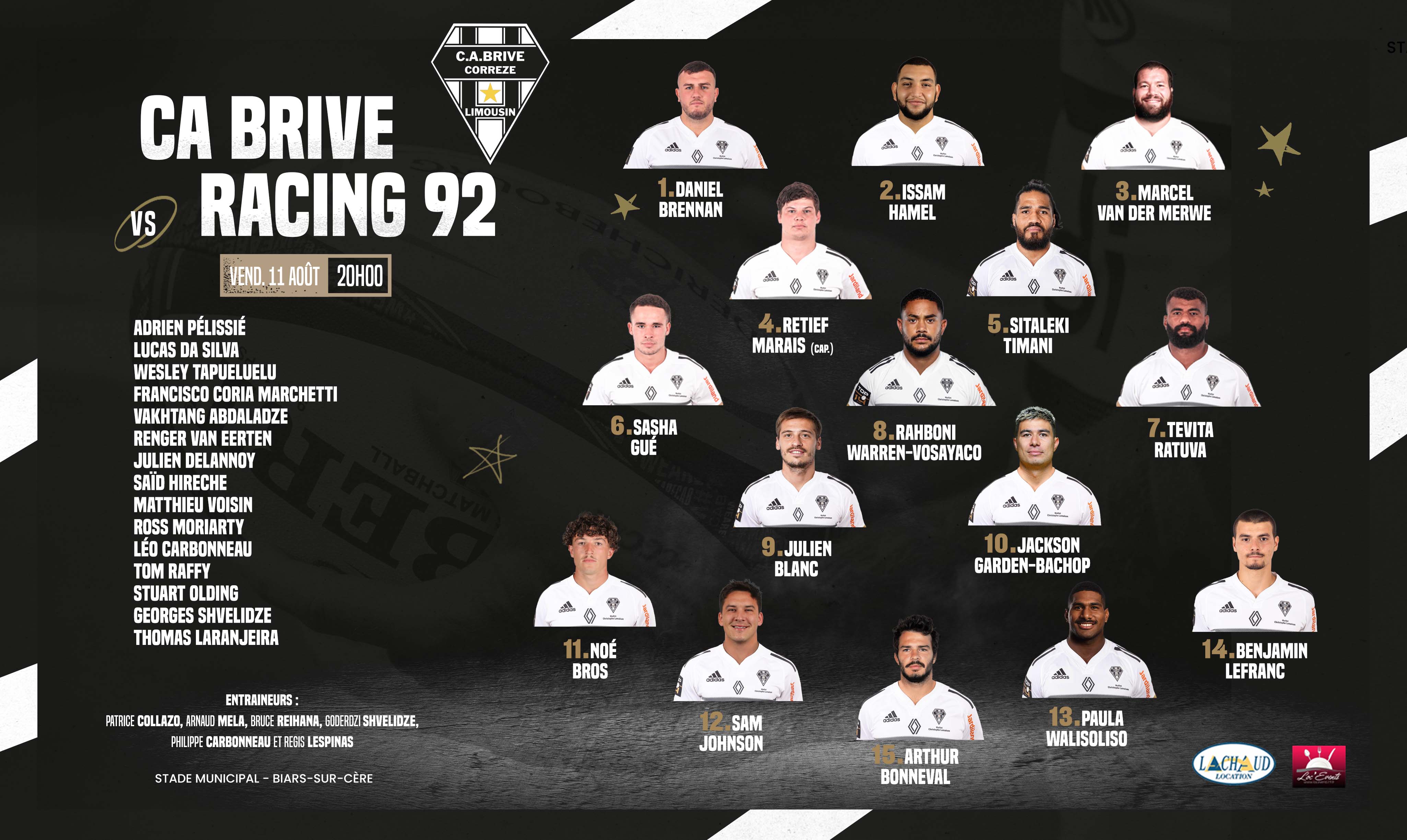 Découvrez la composition du CA Brive pour affronter le Racing 92 à Biars pour ce second match de préparation.