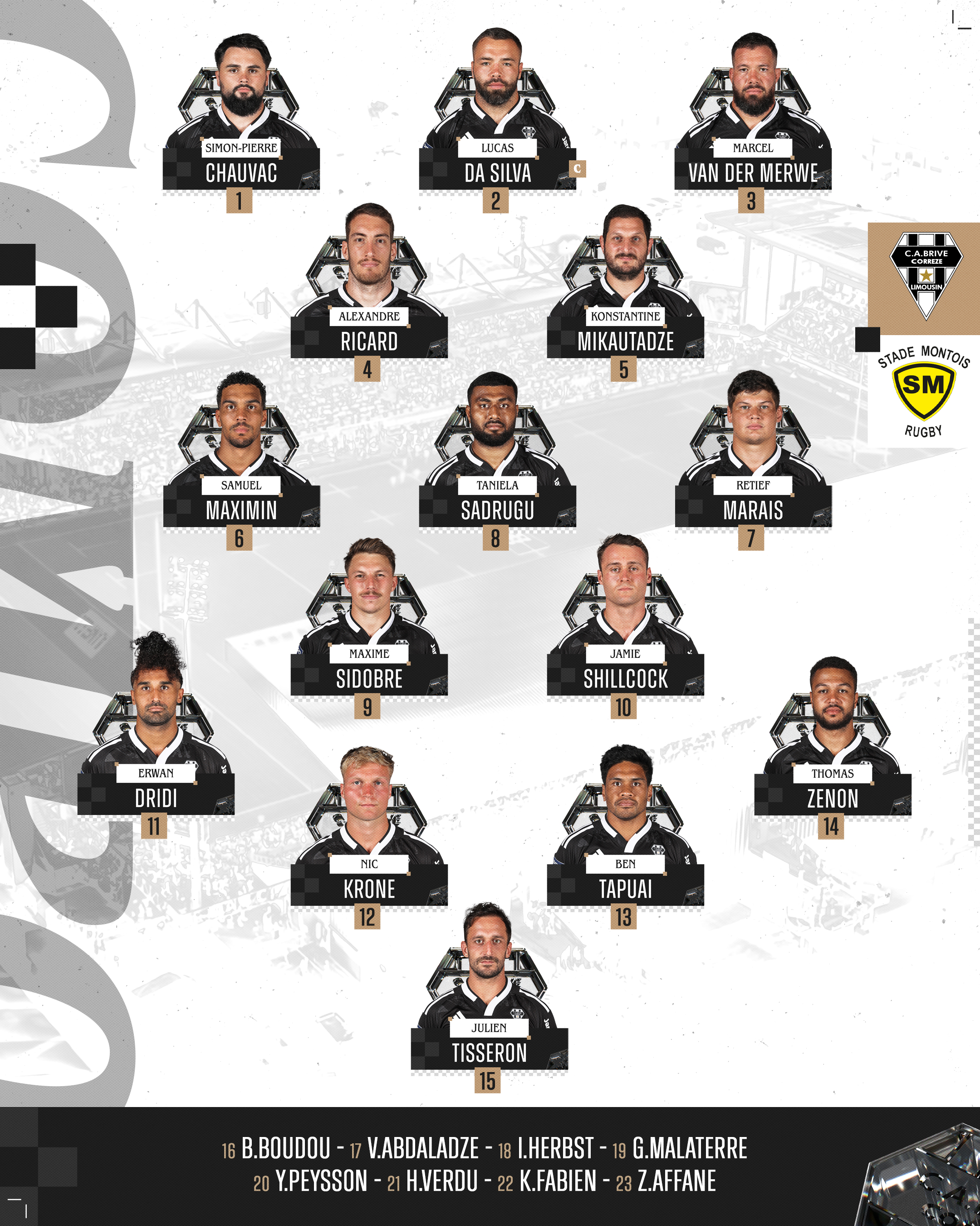 Les Noir & Blanc sont de retour au Stadium. Les Brivistes affronteront le Stade Montois pour le compte de la dixième journée de championnat. Ce sera le dernier match à domicile du deuxième bloc de la saison, et de nouveaux joueurs intègrent le XV de départ. Retief Marais sera titulaire en troisième ligne aile, Lucas Da Silva portera le numéro 2 et sera capitaine des Noir & Blanc tandis que Nic Krone retrouvera le centre du terrain.