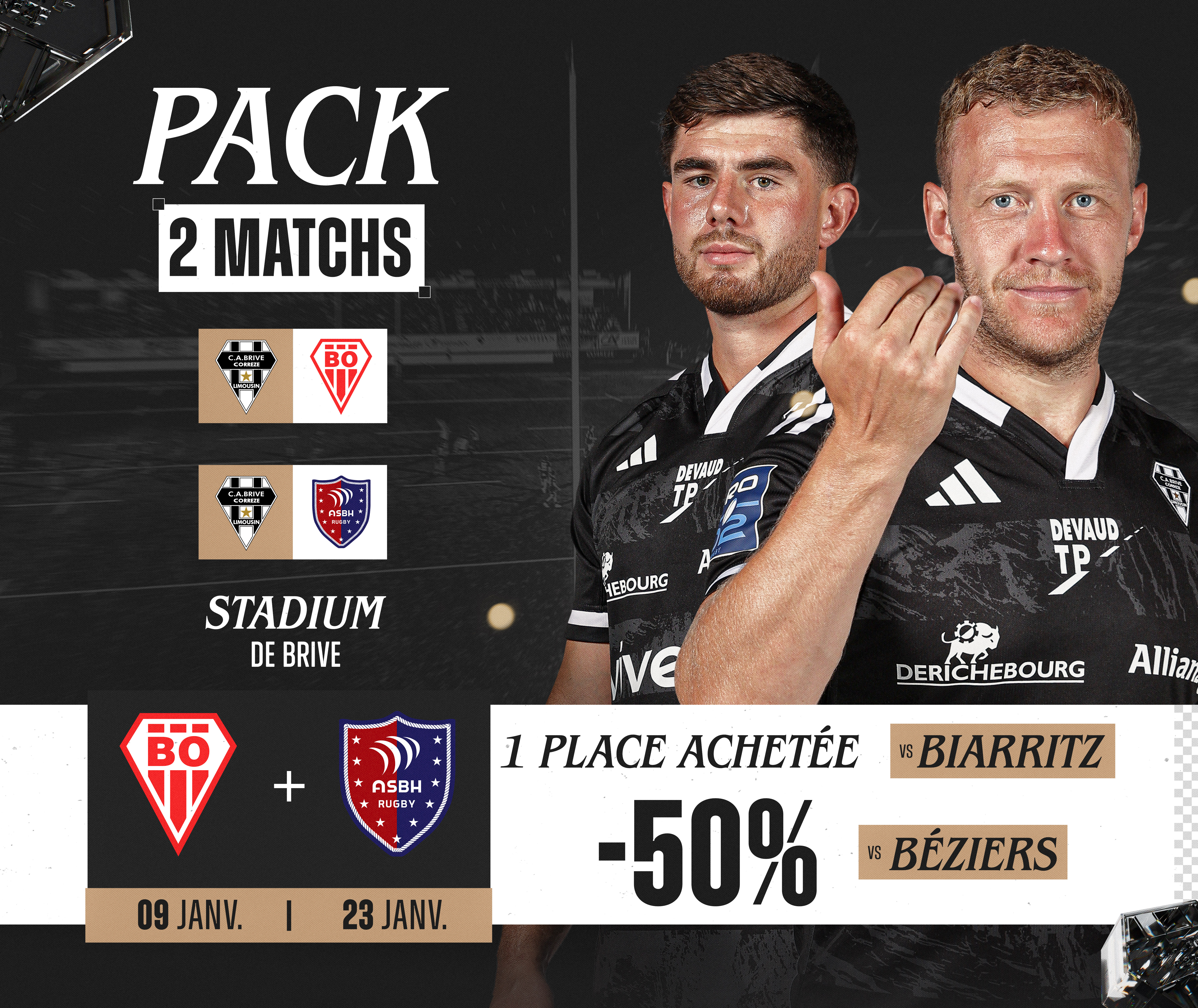 Pour 1 place achetée pour CA Brive / Biarritz, bénéficiez de -50 % sur l’achat d’une place pour CA Brive / Béziers.