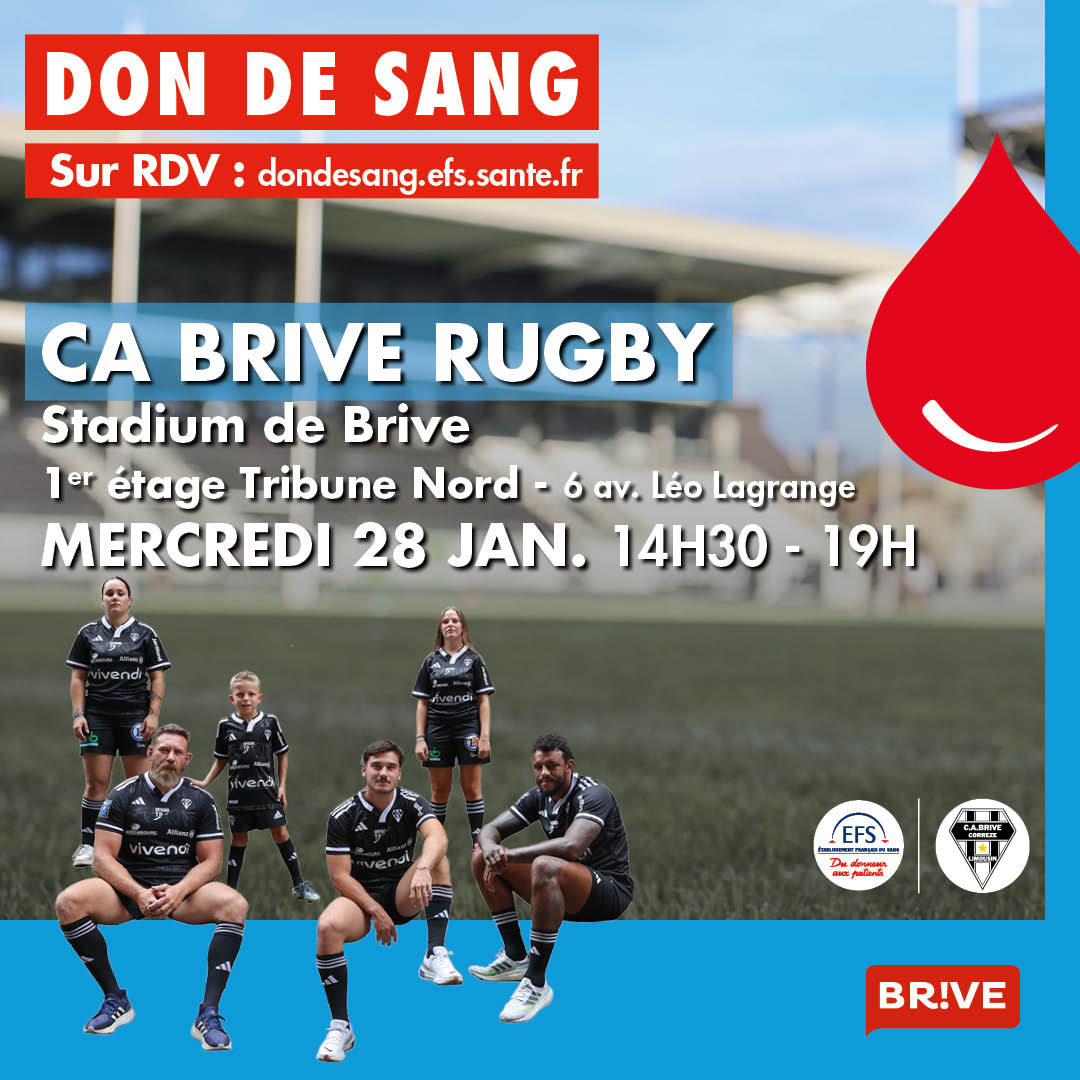 Le CA Brive s'associe une fois de plus avec l'Etablissement Français du Sang pour organiser une grande collecte de sang au Stadium.