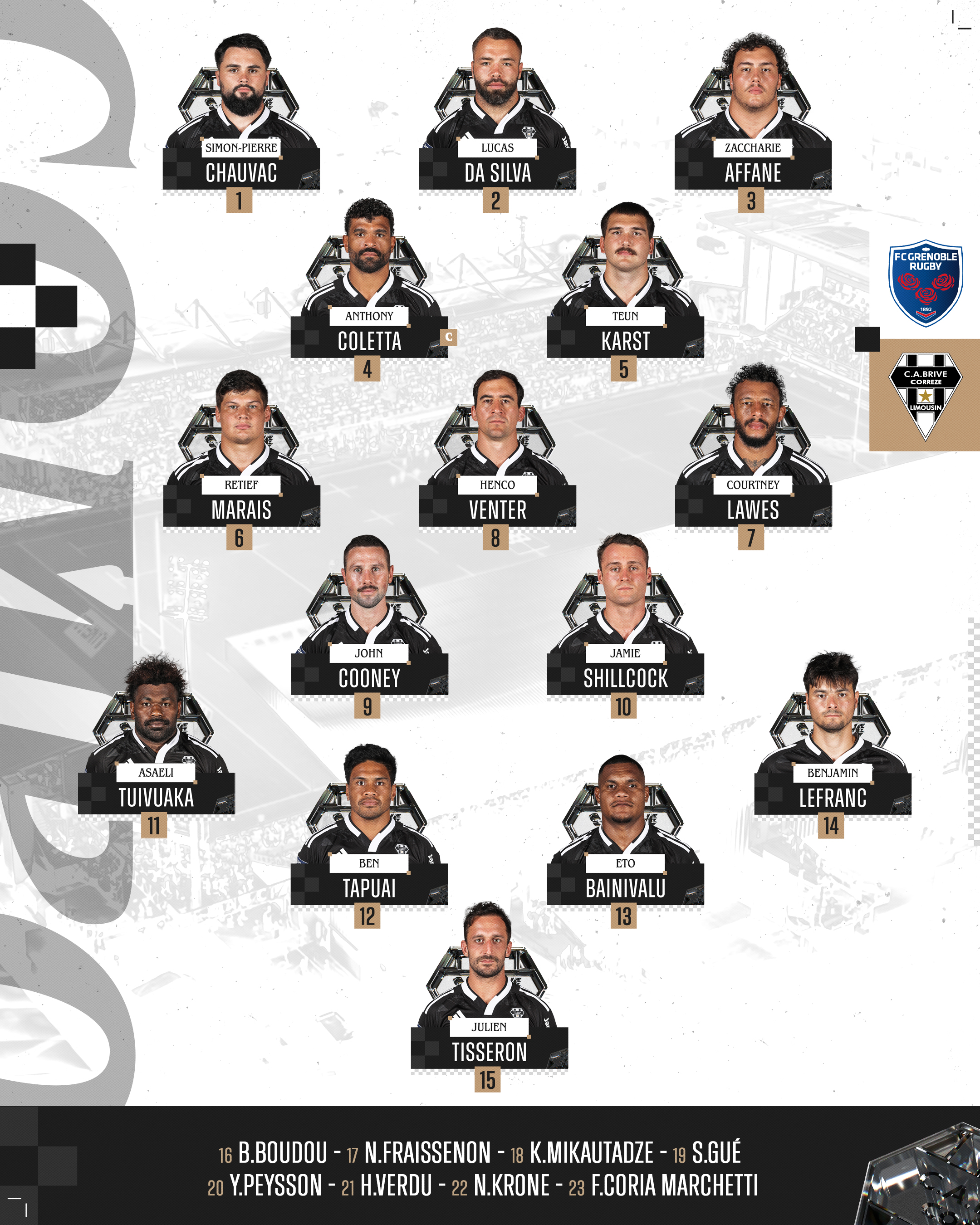 Le XV de départ des Noir & Blanc face à Grenoble